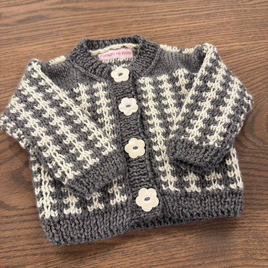 Hand Knit Baby Sweater - Grey Fair Isle