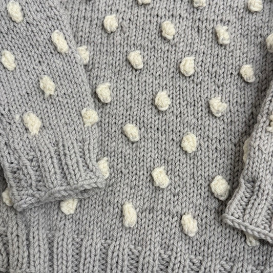 Hand Knit Baby Sweater - Grey with White Pom Poms