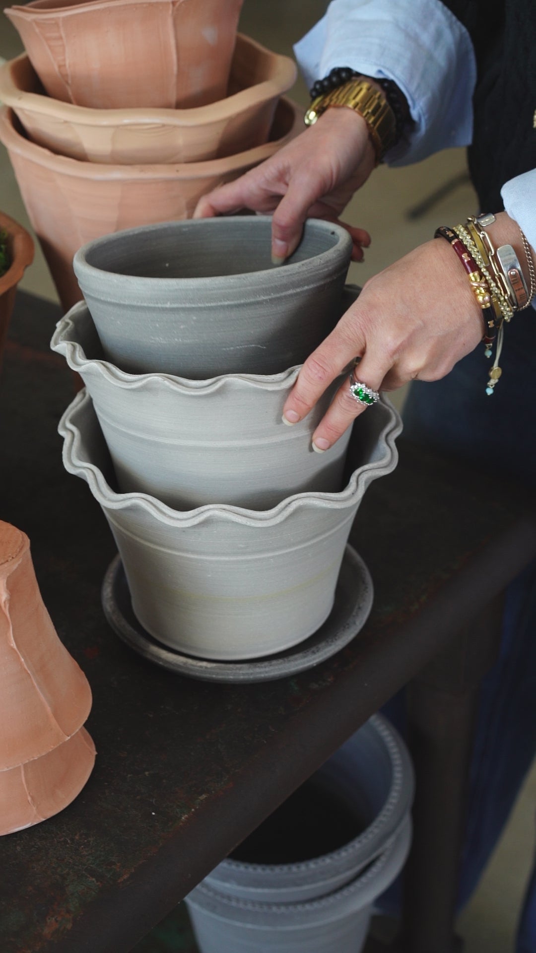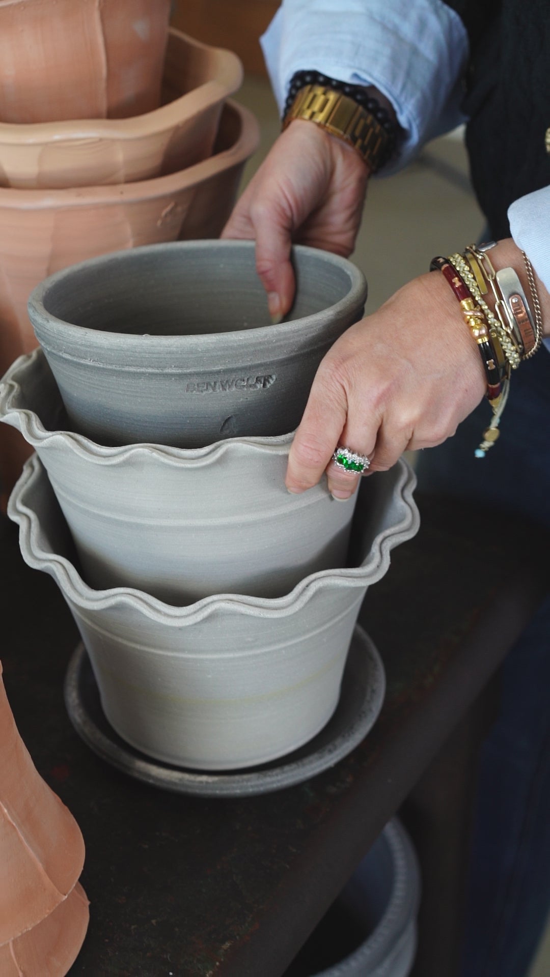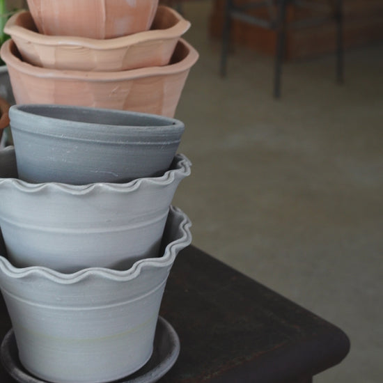 A favorite of Martha Stewart's! These classic scalloped edge pots are made by Ben Wolff in Massachusetts.
