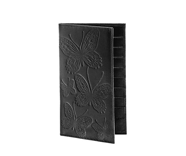 Folded Long Wallet in Embossed Leather - Bernard Maisner Butterfly