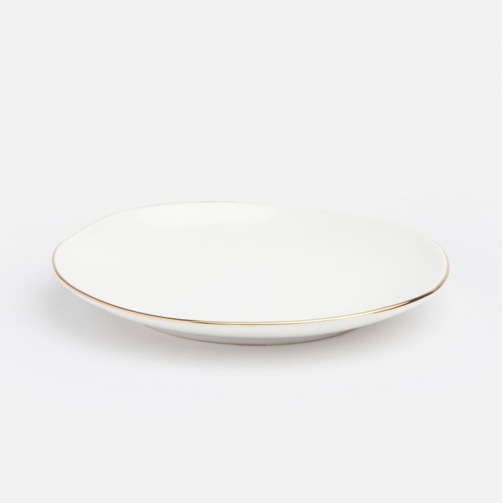 Beautifully crafted in Portugal, has an air of elegance, with just enough movement to save it from formality. A metallic gold glaze trim adds a delicate touch, making it a foundational set with just a hint of glam.