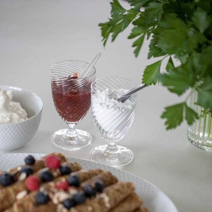 Mouth-blown Danish footed tumbler. 6.4 oz