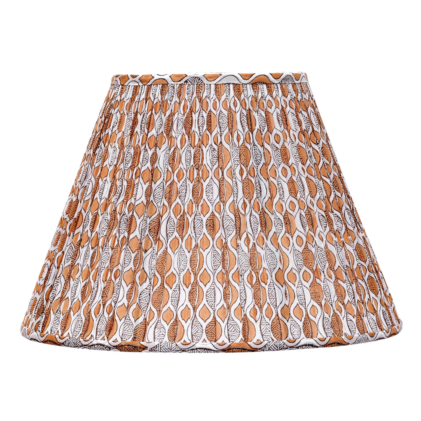 Crafted from hand block printed fabric, this lampshade has a surprising, abstract geometric design in shades of tan. Scaled to work on nearly all of the Bunny Williams Home table lamps.
