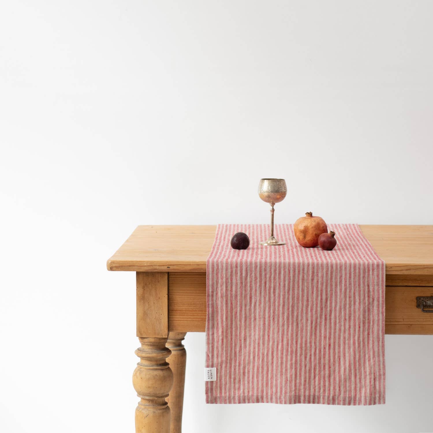 Red Natural Stripes Linen Table Runner: 16"x59" | 40x150 cm