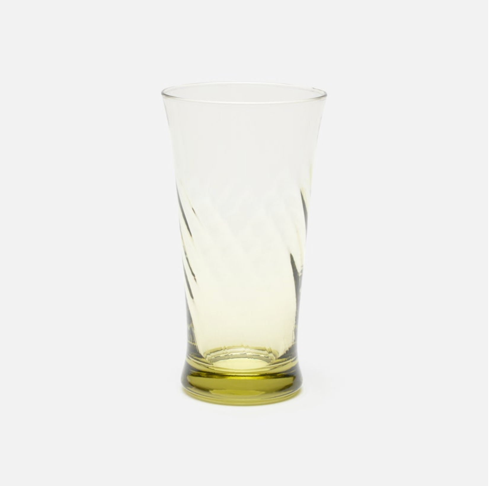 The spiral pattern of this tapered hand blown glass adds optical depth. Serve up a pre-dinner aperitif or a post-feast old-fashioned; the heavier lipped bottom ensures a hand feel as carefully considered as the drink it was made to hold. 6.5" tall.