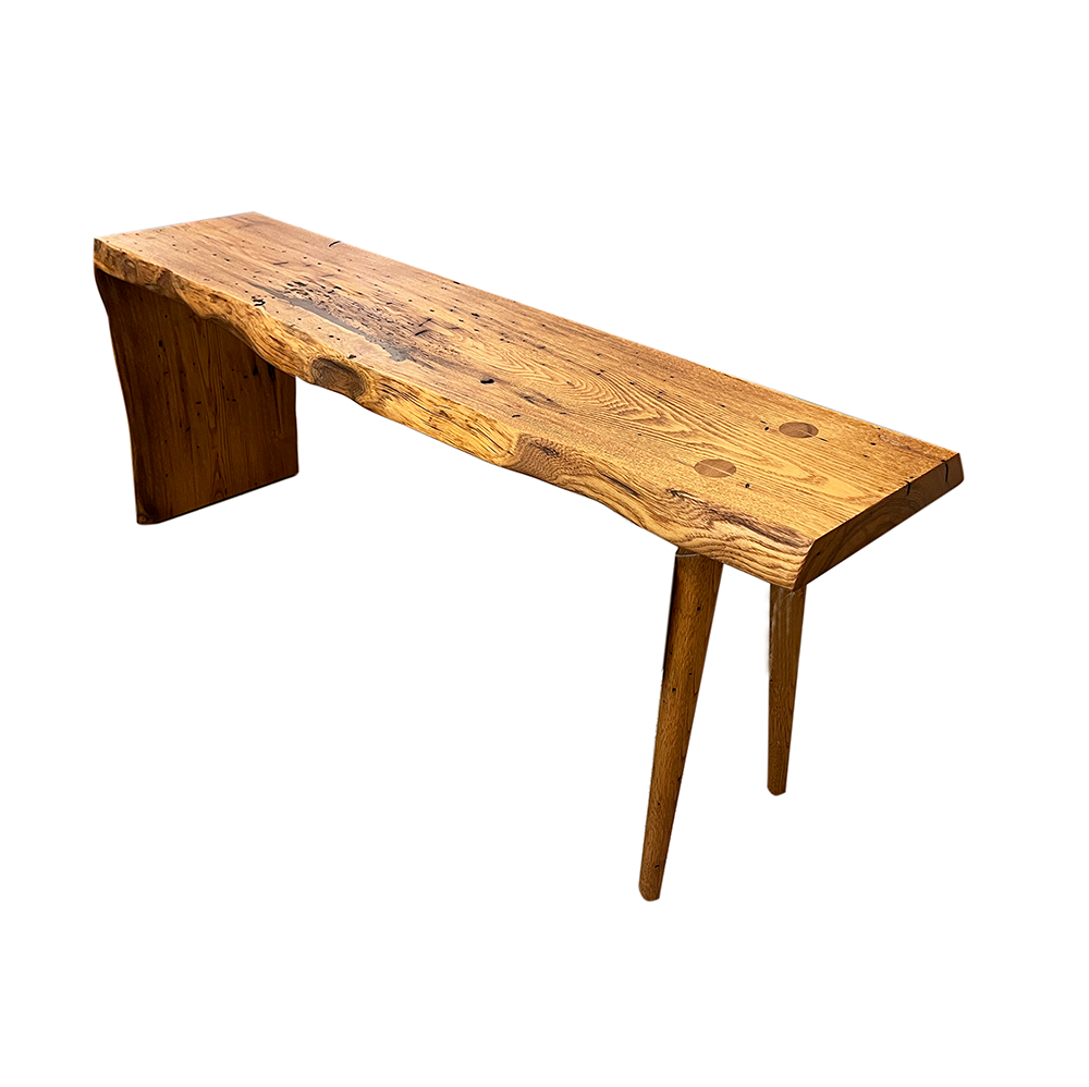 Rustic and unique, this bench was made out of reclaimed wormy chestnut wood, handmade by Daniel Chiles.